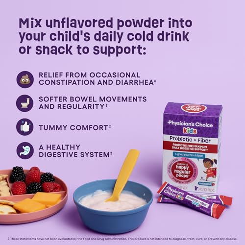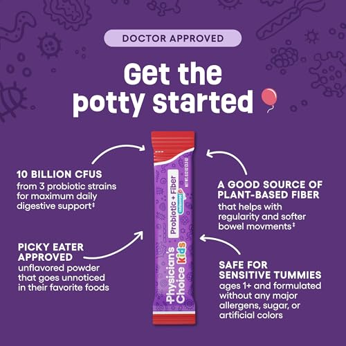 Conheça o Physician’s Choice Kids Probiotic Prebiotic Fiber Packets, um suplemento desenvolvido especialmente para crianças a partir de 1 ano de idade. Composto por 10 bilhões de CFUs de 3 cepas probióticas e 3,3g de fibra vegetal, este produto é perfeito para crianças com estômagos sensíveis e promove uma digestão saudável com facilidade.