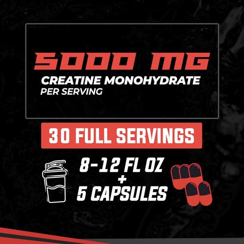 DOSE CIENTIFICAMENTE COMPROVADA: Nossos comprimidos de creatina monohidratada contêm um total de 5000mg por porção, que é a dosagem cientificamente eficaz que você precisa. Este produto vem em forma de cápsula, o que significa que não há pó com gosto ruim e é fácil de tomar.