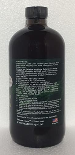 Ingredientes: Unha-de-gato, Raiz de Bardana, Erva de Cássia, Casca de Ulmus rubra, Agrião, Raiz de Ruibarbo Turco, Água de Osmose Reversa.