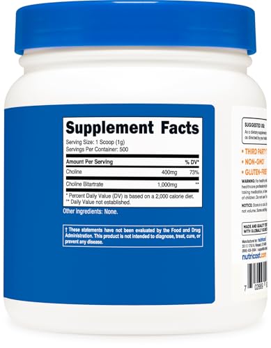 Nutricost Pure Choline Bitartrate Powder 500 Grams é um suplemento de alta qualidade que fornece uma forma pura de colina bitartarato em pó. Cada frasco contém 500 gramas de colina bitartarato, garantindo um suprimento duradouro. Este produto é fabricado em uma instalação registrada pela FDA e em conformidade com as Boas Práticas de Fabricação (GMP). Isso garante que o produto seja produzido com os mais altos padrões de qualidade e segurança.