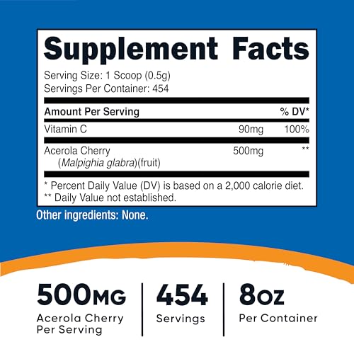 2. Fonte natural de vitamina C: O Nutricost Natural Vitamin C Powder é feito com Acerola Cherry, uma fruta rica em vitamina C. Essa é uma opção natural e saudável para obter esse nutriente.