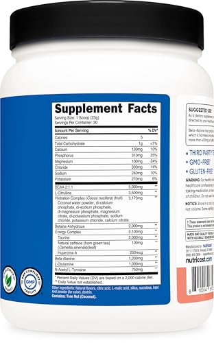 O Nutricost Intra-Workout Powder fornece uma dose potente de 22 gramas de nutrição por porção, ajudando a maximizar o desempenho e a recuperação durante o treino.