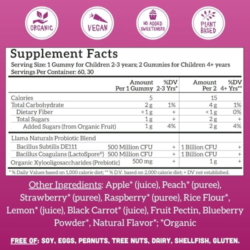 Llama Naturals Real Fruit Prebiotic é um suplemento probiótico clinicamente comprovado que oferece uma série de benefícios para as crianças. Esses probióticos reduzem dores de barriga, constipação ocasional e melhoram a saúde geral do intestino. Nossas gomas são feitas com uma combinação única de frutas, prebióticos e probióticos que ajudam naturalmente o intestino das crianças, sem causar inchaço ou efeitos colaterais indesejados.