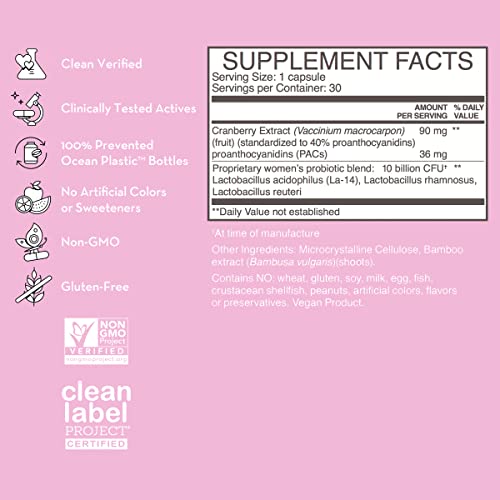 PROBIÓTICOS RICOS PARA MULHERES – Este suplemento de cranberry é formulado com PACs de cranberry e 3 potentes cepas de probióticos, incluindo o probiótico lactobacillus acidophilus, lactobacillus rhamnosus e lactobacillus reuteri.*