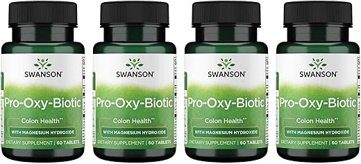 Swanson Pro-Oxy-Biotic 60 Tabs (4 Pack) é um suplemento alimentar de alta qualidade que oferece uma série de benefícios para a saúde do seu cólon. Com uma fórmula exclusiva que combina magnésio hidróxido e um agente oxigenante, este produto é seguro e eficaz para uso diário.