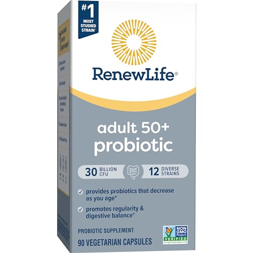 Renew Life Probiotic Adult 50 Plus Probiotic Capsules é um suplemento diário que suporta a saúde urinária, digestiva e imunológica. Com uma fórmula probiótica que inclui 30 bilhões de CFUs (unidades formadoras de colônias), este produto é projetado especificamente para adultos com mais de 50 anos. Comprovadamente testado clinicamente, este suplemento contém uma mistura de 12 diferentes cepas probióticas para apoiar a saúde digestiva e imunológica. Além disso, possui mais cepas clinicamente estudadas do que a marca líder, garantindo benefícios respaldados pela ciência. Entre essas cepas, destaca-se a L. rhamnosus GG, a cepa mais estudada e conhecida por promover a saúde intestinal e uma resposta imunológica saudável.