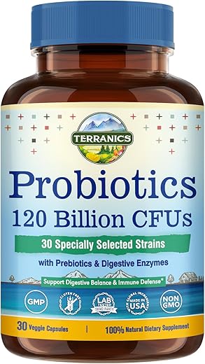 1. Fabricado nos EUA: A Terranics Probiotics 120 Billion CFU é produzida em uma instalação certificada GMP nos Estados Unidos, seguindo os mais altos padrões de qualidade e pureza.