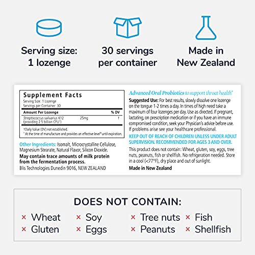 BLIS Probiotics ThroatHealth Oral Probiotics K12 2.5 Billion Cfu, Throat Immunity Support