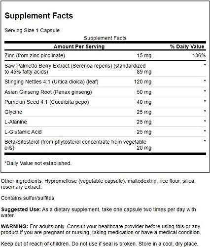 POWERFUL HERBAL BLEND: Cada uma de nossas cápsulas fáceis de engolir contém 15mg de zinco, 89mg de extrato de Saw Palmetto Berry, concentração 4:1 de folha de Urtiga e outros ingredientes poderosos contendo nutrientes vitais para apoiar o bem-estar da próstata.