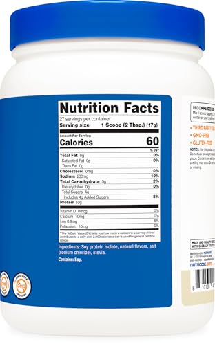 O Nutricost Soy Protein Isolate Powder é um suplemento em pó de proteína isolada de soja, com sabor de baunilha, que oferece uma experiência suave e deliciosa a cada porção. Com uma embalagem generosa de 1 lb, este produto fornece uma quantidade abundante de porções para uso regular. Além disso, é formulado sem glúten, atendendo às preferências e restrições alimentares daqueles que evitam o consumo dessa substância. Também é livre de organismos geneticamente modificados (GMOs), garantindo uma opção saudável e segura. O Nutricost Soy Protein Isolate Powder é fabricado em uma instalação que segue as Boas Práticas de Fabricação (GMP) e é testado por terceiros, garantindo a qualidade e a confiabilidade do produto.