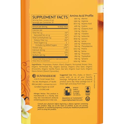 Limpo e Puro: Feito com os mais altos padrões de qualidade, o Sunwarrior Protein Classic Plus é livre de sabores artificiais, adoçantes e aditivos. É Certificado Orgânico, Verificado pelo Projeto Non-GMO e sem glúten, garantindo que você receba apenas a forma mais limpa e pura de proteína vegetal.