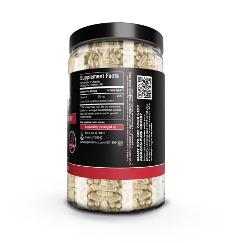 Cápsulas de Acerola Cherry Ingredientes Puros Originais (730 cápsulas) Sem Magnésio ou Preenchedores de Arroz, Sempre Puro, Verificado em Laboratório