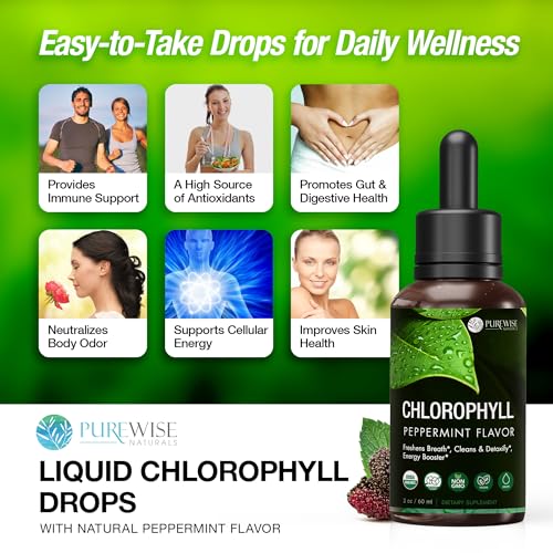 As gotas líquidas de clorofila são um suplemento premium de alta qualidade que oferece uma série de benefícios para a saúde. Essas gotas líquidas veganas de clorofila fornecem suporte energético e imunológico, desintoxicação diária, promovem a digestão e a saúde intestinal, atuam como um desodorante interno natural e impulsionam a saúde geral. Feitas a partir de folhas de amora, essas gotas ricas em antioxidantes possuem uma fórmula líquida pura que é absorvida mais facilmente pelo corpo em comparação com cápsulas. Além disso, elas têm um delicioso e refrescante sabor de hortelã-pimenta. Com a garantia de devolução do dinheiro, você pode experimentar essas gotas de clorofila sem preocupações. Recomendamos o uso diário dessas gotas líquidas de clorofila para promover a circulação e o fluxo sanguíneo saudáveis, ajudar a eliminar toxinas, reduzir gases e inchaço, manter a pele saudável, a função hepática e obter benefícios antioxidantes. É fácil de tomar, basta adicionar as gotas à água, smoothies ou qualquer outra bebida pela manhã para uma limpeza diária. Formulado para máxima potência, o suplemento de clorofila líquida da Purewise é feito com ingredientes puros e simples, embalados com benefícios nutricionais máximos. A clorofilina, a forma solúvel em água derivada da clorofila natural, é melhor absorvida pelo corpo. Cada frasco contém um suprimento de três meses, com um total de 1.500mg de clorofila natural por frasco (30 porções de 50mg). Nossas gotas líquidas de clorofila são feitas de folhas de amora, são 100% naturais, não transgênicas, veganas, livres de laticínios, nozes, glúten e trigo, livres de soja, sem solanáceas e sem açúcar. Orgulhosamente fabricado nos EUA.