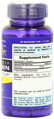 Recomenda-se tomar 1 cápsula do Puritan’s Pride Melatonin 10 mg Sleep aid Relax Sleep Pill cerca de 30 minutos antes de dormir. Não exceda a dose recomendada, a menos que indicado por um profissional de saúde. Consulte um médico antes de usar se estiver grávida, amamentando, tomando medicamentos ou tiver algum problema de saúde.