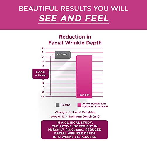 Além de promover cabelos mais grossos, o MyBiotin ProClinical também proporciona uma pele mais suave. Sua fórmula reduz linhas finas e rugas, e com a adição de Astaxantina, comprovadamente estudada clinicamente, o MyBiotin ProClinical oferece 17 vezes mais hidratação para a pele em comparação com um placebo.*