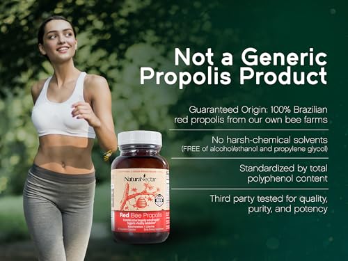 NaturaNectar Red Bee Propolis é o PRIMEIRO E ÚNICO produto de própolis vermelha brasileira testado e certificado de acordo com o único padrão nacional americano para suplementos alimentares, NSF/ANSI 173. Com a certificação NSF CONTENTS CERTIFIED, você pode ter confiança de que o que está no rótulo está no produto. Nossos produtos SEM GLÚTEN não contêm etanol, propilenoglicol ou produtos químicos agressivos (livre de solventes, verificado pela NSF International).