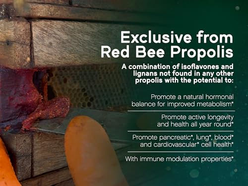 Com uma quantidade significativamente alta de antioxidantes, até mais do que superfrutas, a NaturaNectar Red Bee Propolis é um antioxidante indispensável. Ela possui flavonoides mais diversos do que qualquer outro tipo de própolis no mundo, oferecendo uma combinação exclusiva de isoflavonas e lignanas – classes especiais de flavonoides que promovem um equilíbrio hormonal natural para melhorar o metabolismo. Vestitol, Neo-Vestitol e Formononetin estão entre os compostos únicos encontrados naturalmente nessa própolis.