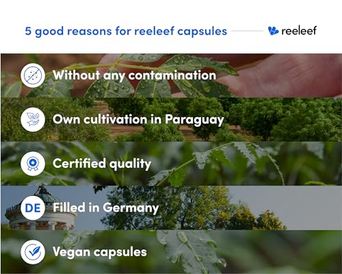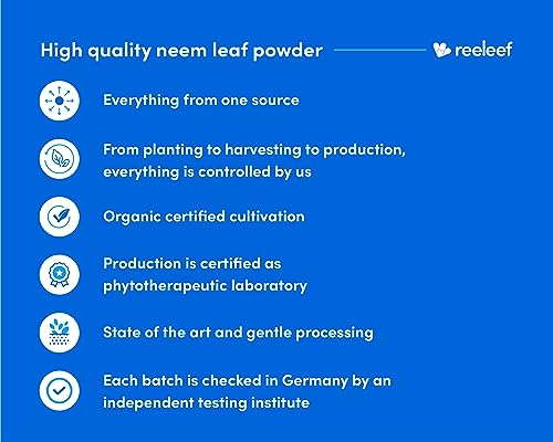 Todas as nossas folhas de neem são cuidadosamente colhidas à mão, lavadas, secas e processadas de acordo com rigorosos padrões de laboratório certificados. Em seguida, elas são transportadas para a Alemanha e preenchidas nas cápsulas de suplemento de neem. Isso garante que você esteja recebendo um produto de alta qualidade e confiabilidade.