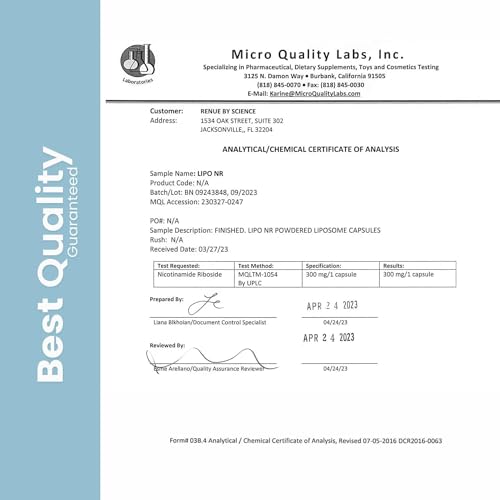 RENUE by Science Nicotinamide Riboside | High Strength Liposomal NAD Supplement | 90 Nicotinamide Capsules – 300mg Nicotinamide Riboside per Serving | Manufactured in The USA