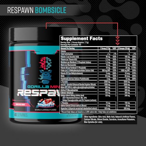 O Gorilla Mind Respawn é um suplemento formulado especialmente para gamers que desejam melhorar seu desempenho durante as sessões de jogos. Com este produto, você pode esperar uma quantidade significativa de energia, foco, alerta e clareza mental, além de um aumento no tempo de reação e uma redução na chance de ficar frustrado durante as partidas. Os efeitos são fortes e direcionados especificamente para gamers, visando melhorar funções específicas, como consciência do mapa, capacidade de multitarefa, comunicação verbal e chamadas, mira, coordenação mão-olho e compreensão fundamental do jogo.
