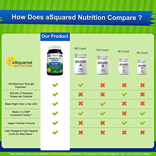 A aSquared Nutrition tem um histórico comprovado de qualidade e confiabilidade. Além do suplemento de Rhodiola Rosea, eles oferecem uma linha de produtos em constante expansão, incluindo CoQ10 400mg (Coenzima Q10), Vitamina B-12 (Metil B12), Panax Ginseng, Cardo de Leite 1000mg, DHEA 100mg, Resveratrol 1000mg, Curcumina de Cúrcuma, Canela Ceylon Natural (100% Natural), Extrato de Café Verde, Garcinia Cambogia, Berberina e Forscolina 500mg.