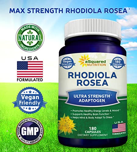 Rhodiola Rosea é uma planta adaptogênica conhecida por seus benefícios para a saúde e bem-estar. A fórmula potente do suplemento de Rhodiola Rosea da aSquared Nutrition contém 500mg por cápsula vegetariana (1000mg por porção) e é fabricada nos Estados Unidos em uma instalação compatível com as Boas Práticas de Fabricação (GMP). A Rhodiola Rosea é nativa das regiões árticas da Ásia, Europa e até mesmo da Sibéria. Ao contrário de outras marcas que oferecem apenas 60, 90 ou 120 cápsulas, a aSquared Nutrition oferece 180 cápsulas veganas por frasco.