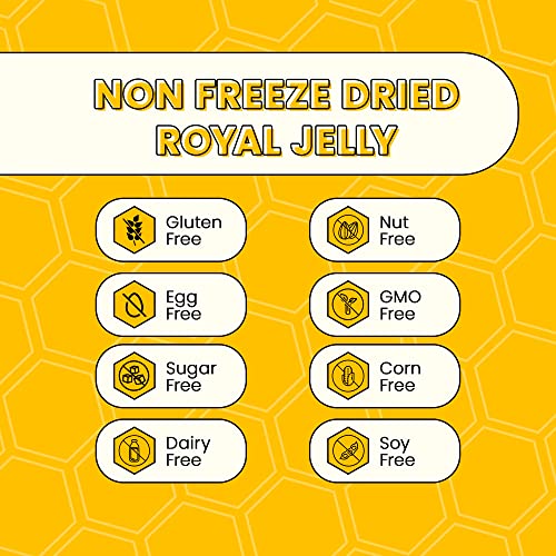 Nossa fórmula Ultra-Premium é 100%% Natural, com geleia real não liofilizada recém-colhida e pura, sem corantes artificiais, sabores, conservantes, aditivos ou agentes de volume. A saúde dos nossos clientes vem em primeiro lugar.