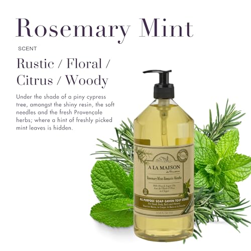 A LA MAISON French Liquid Hand Soap, Rosemary Mint é um sabonete líquido para as mãos feito com óleos essenciais naturais. Sua fórmula biodegradável e à base de plantas é perfeita para quem busca produtos veganos e livres de crueldade animal. Com um aroma refrescante de alecrim e hortelã, este sabonete proporciona uma experiência sensorial única durante a lavagem das mãos.