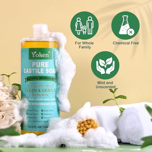 Yoken Pure Castile Soap Liquid Unscented 67 fl oz é um sabonete líquido versátil e de alta qualidade, feito com óleos orgânicos. Formulado com óleos orgânicos que contêm antioxidantes, vitaminas, minerais e ácidos graxos ômega, o sabonete líquido castela sem perfume da Yoken produz uma espuma luxuosa, sem produtos químicos sintéticos, suave para a pele e bom para o meio ambiente.
