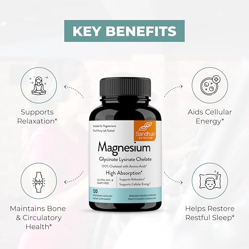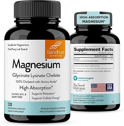 Sandhu’s Magnesium Glycinate Lysinate é um suplemento de magnésio de alta potência disponível em cápsulas vegetarianas fáceis de engolir. Como uma das formas mais suaves de magnésio, este suplemento utiliza magnésio quelado altamente concentrado para facilitar a digestão e absorção.