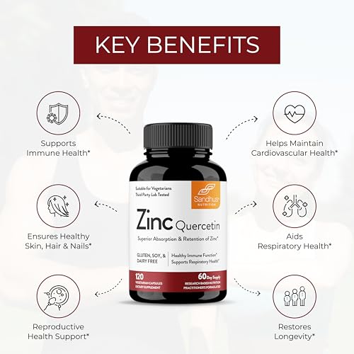 Sandhu’s Zinc Quercetin 120 Vegetarian Capsules (Pack of 3) – Zinc Supplements for Antioxidant Immune Support Zinc for Men and Women