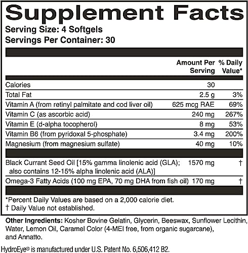 O GLA, conhecido como o Ômega dos Olhos Secos, é muito mais poderoso do que o óleo de linhaça ou óleo de peixe isoladamente e não é facilmente obtido através da dieta. Essa combinação única de ingredientes faz do HydroEye Softgels uma escolha superior para o alívio dos olhos secos.