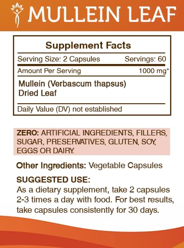 Para obter os melhores resultados, recomenda-se tomar 2 cápsulas de folha de mullein por dia, de preferência com as refeições. Consulte um profissional de saúde antes de iniciar qualquer suplementação. Armazene em local fresco e seco, longe da luz solar direta.