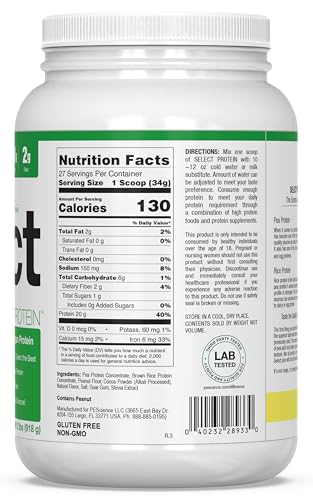 PEScience Select Vegan Plant Based Protein Powder, Chocolate Peanut Butter, 27 Serving, Premium Pea and Brown Rice Blend