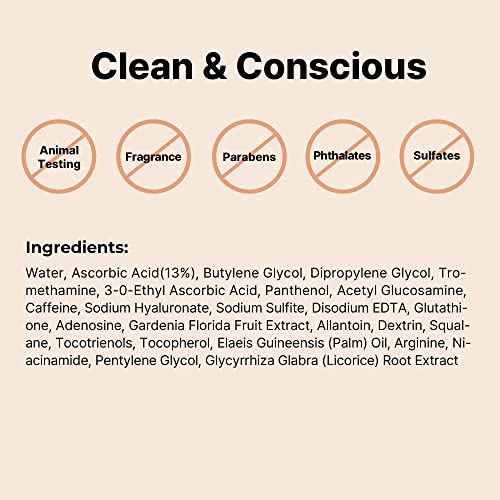 Recomendamos fazer um teste de adesivo antes de usar o serum no rosto, pois ele é composto por uma alta concentração de vitamina C pura. Os ingredientes dermatológicos deste serum incluem vitamina C pura (ácido ascórbico), que ajuda a alcançar uma pele radiante e jovem, e vitamina E super potente (tocotrienol), que combate os sinais de envelhecimento e retarda os danos à pele. O ácido hialurônico presente na fórmula proporciona uma hidratação profunda à pele, reduzindo a aparência de linhas finas e rugas.
