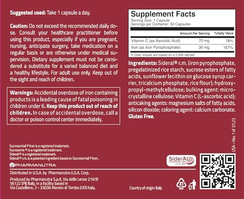 SiderAL® Forte by PHARMANUTRA is a highly effective Sucrosomial® Iron Supplement that is designed to enhance overall health. This supplement contains Sucrosomial Iron and Vitamin C, which work together to address nutritional deficiencies and promote optimal well-being. Each box of SiderAL® Forte includes 30 capsules, providing a month’s supply of this powerful supplement. With its high absorption rates, SiderAL® Forte ensures maximum efficacy, allowing your body to benefit fully from the iron and vitamin C it contains. Additionally, this supplement is renowned for its great tolerability, making it suitable for regular use without causing any discomfort.