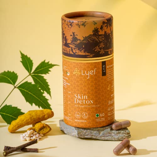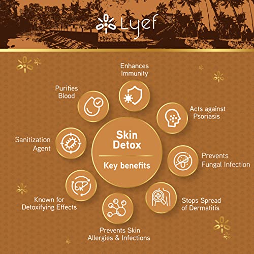 LYEF Skin Detox é um suplemento herbal feito com ingredientes 100% naturais, oferecendo uma solução segura e eficaz de Ayurveda para limpeza do sangue e desintoxicação da pele.