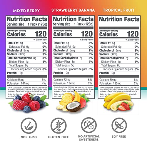 Designer Wellness Protein Smoothie, Real Fruit, 12g Protein, Low Carb, Zero Added Sugar, Gluten-Free, Non-GMO, No Artificial Colors or Flavors, Variety Pack, 12 Count