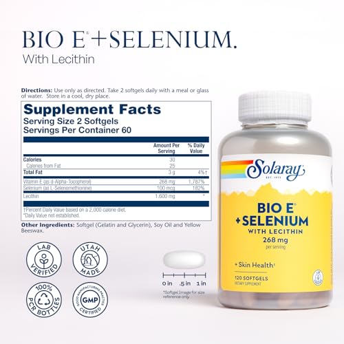 O suplemento Solaray Bio E com Selênio, 400 UI, 120 cápsulas, é uma excelente opção para quem busca uma fonte de vitamina E de alta potência. Cada duas cápsulas diárias fornecem 268 mcg ou 400 UI de vitamina E, o que corresponde a 1.787%% do valor diário recomendado dessa vitamina essencial.