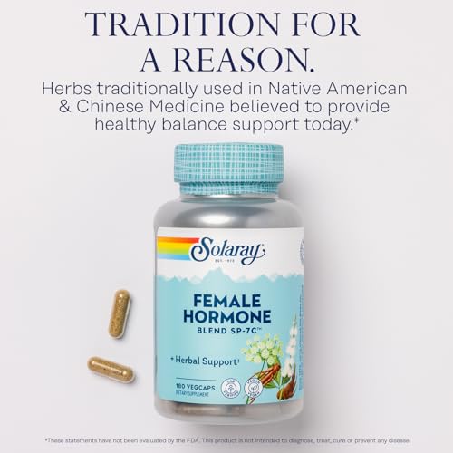 Conheça o Solaray Female Hormone Blend SP-7C, uma mistura herbal que inclui Cohosh Preto, Dong Quai, Flor da Paixão, Saw Palmetto e Yam Selvagem. Este suplemento foi especialmente formulado para fornecer suporte herbal para o equilíbrio saudável em mulheres. Com uma combinação de ervas tradicionalmente usadas para promover a saúde menstrual e a menopausa, este produto é uma opção natural para mulheres que desejam um suporte adicional.