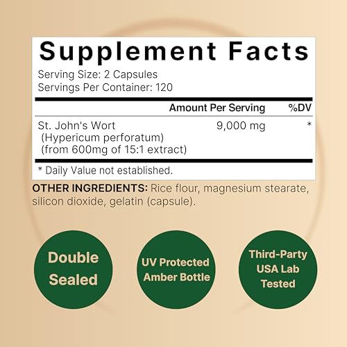 As cápsulas de St. John’s Wort da NatureBell são a força máxima disponível no mercado, com uma equivalência herbal de 9.000mg e um extrato potente de 15:1 do Hypericum Perforatum, que mantém uma fonte rica de hypericin de origem vegetal para um bem-estar ótimo.