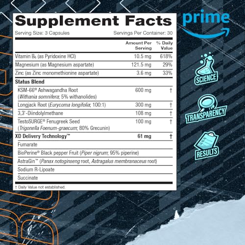Blue Star Nutraceuticals Status é um suplemento de testosterona para homens que é respaldado pela ciência e projetado para uso diário. Esta fórmula ajuda a promover o crescimento muscular, a queima de gordura e a aumentar a resistência. Com ingredientes cientificamente comprovados, Status é formulado com doses completas de ingredientes-chave que aumentam os níveis de testosterona e combatem até mesmo o estrogênio. Um desses ingredientes é o KSM 66 Ashwagandha, um ingrediente patenteado de espectro completo encontrado no Status, que demonstrou reduzir o cortisol e aumentar os níveis naturais de testosterona. Para obter os benefícios deste suplemento, basta tomar uma dose (3 cápsulas) pela manhã e deixar a ciência fazer o resto. Além disso, o Status é testado por terceiros e fabricado em uma instalação certificada pela CGMP.