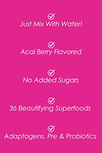 GUT HEALTH & IMMUNITY. Beauty Juice está repleto de prebióticos, probióticos, adaptógenos e nutrientes embelezadores. Nossa mistura única de superalimentos promove bactérias saudáveis no intestino, o que pode ajudar com inchaço e inflamação.