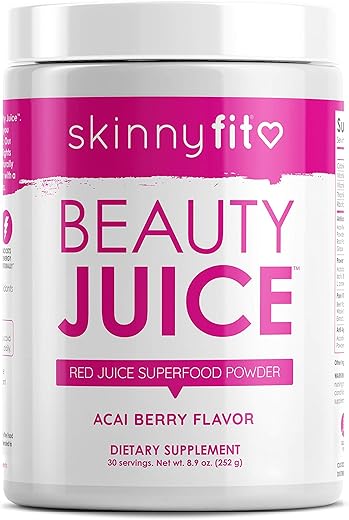 DELICIOUS ACAI BERRY FLAVOR. O SkinnyFit Beauty Juice é cheio de sabor natural de açaí. É vegano, sem glúten, sem soja e sem laticínios. Beauty Juice é delicioso como está, basta adicionar água!