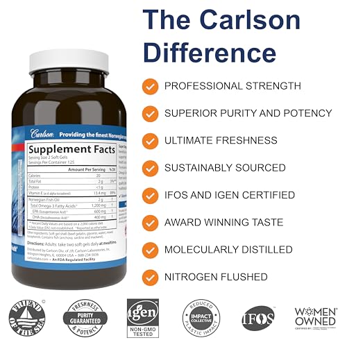 Os Carlson – Super Omega-3 Gems são uma excelente opção para promover a saúde cardiovascular, cerebral e visual. Cada porção deste suplemento contém 1.200 mg de ômega-3, fornecendo uma dose potente e eficaz para o seu corpo. Além disso, essas cápsulas são certificadas pela IFOS e IGEN como não transgênicas, garantindo a qualidade e segurança do produto. A Carlson também se compromete com a frescura, potência e pureza dos seus suplementos, proporcionando uma experiência confiável e benéfica para o consumidor.
