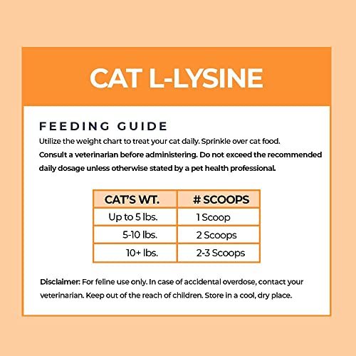 Para obter os melhores resultados, recomendamos polvilhar 1 colher de chá (2 gramas) do Suplemento de L-Lisina para Gatos da Alpha Paw sobre a comida do seu gato uma vez ao dia. Certifique-se de que seu gato tenha água fresca disponível durante o uso deste suplemento.