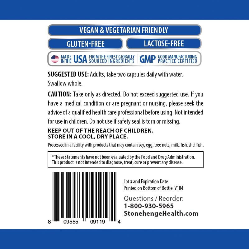 🛡️ VEGAN com Cápsula Vegetariana: Este suplemento é adequado para veganos, pois é feito com cápsulas vegetarianas. Além disso, é livre de alérgenos, antibióticos, glúten, açúcar, hormônios, aglutinantes ou enchimentos. É fabricado nos EUA com os melhores ingredientes de origem global e passa por testes de terceiros para garantir a qualidade.