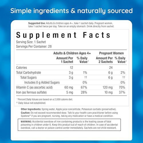 O Spatone é altamente absorvido pelo organismo e suave para o estômago, sendo uma opção de baixa dosagem que dificilmente causará desconforto gastrointestinal*. Você pode beber diretamente do sachê ou misturar com suco rico em vitamina C para potencializar os benefícios. Além disso, esse suplemento é adequado para toda a família, incluindo veganos, vegetarianos e mulheres grávidas ou lactantes*. Sua fórmula suave permite que pessoas a partir dos 4 anos de idade desfrutem dos benefícios do Spatone.