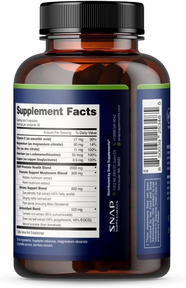O Suplemento de Suporte à Saúde da Próstata da Snap Supplements é uma fórmula natural projetada para promover a saúde da próstata em homens. Com extrato orgânico de Saw Palmetto, este suplemento é conhecido por seu papel positivo na saúde reprodutiva masculina e no suporte à função orgânica saudável da próstata. Além disso, contém extrato de Raiz de Urtiga e Cogumelo Maitake, que também são conhecidos por seus benefícios à saúde da próstata.