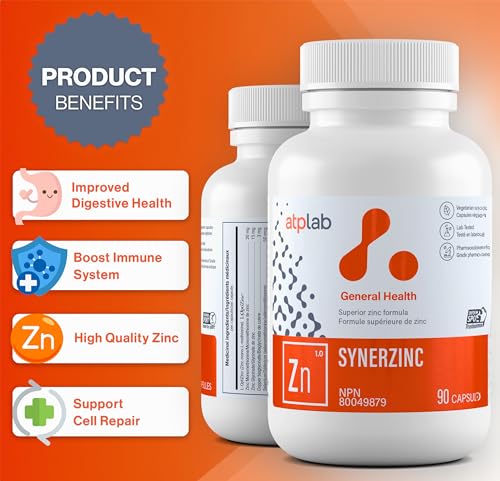 ATP LAB Synerzinc 90 caps – Suplemento de Zinco Vegano para Homens e Mulheres – Suplementos Minerais de Zinco – Pele Saudável – Vitaminas de Zinco para Adultos